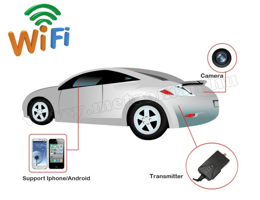 Vezeték nélküli Wifi Kamera, Tolatókamera jeltovábbító mobiltelefonhoz, Mlogic MM903W RCA