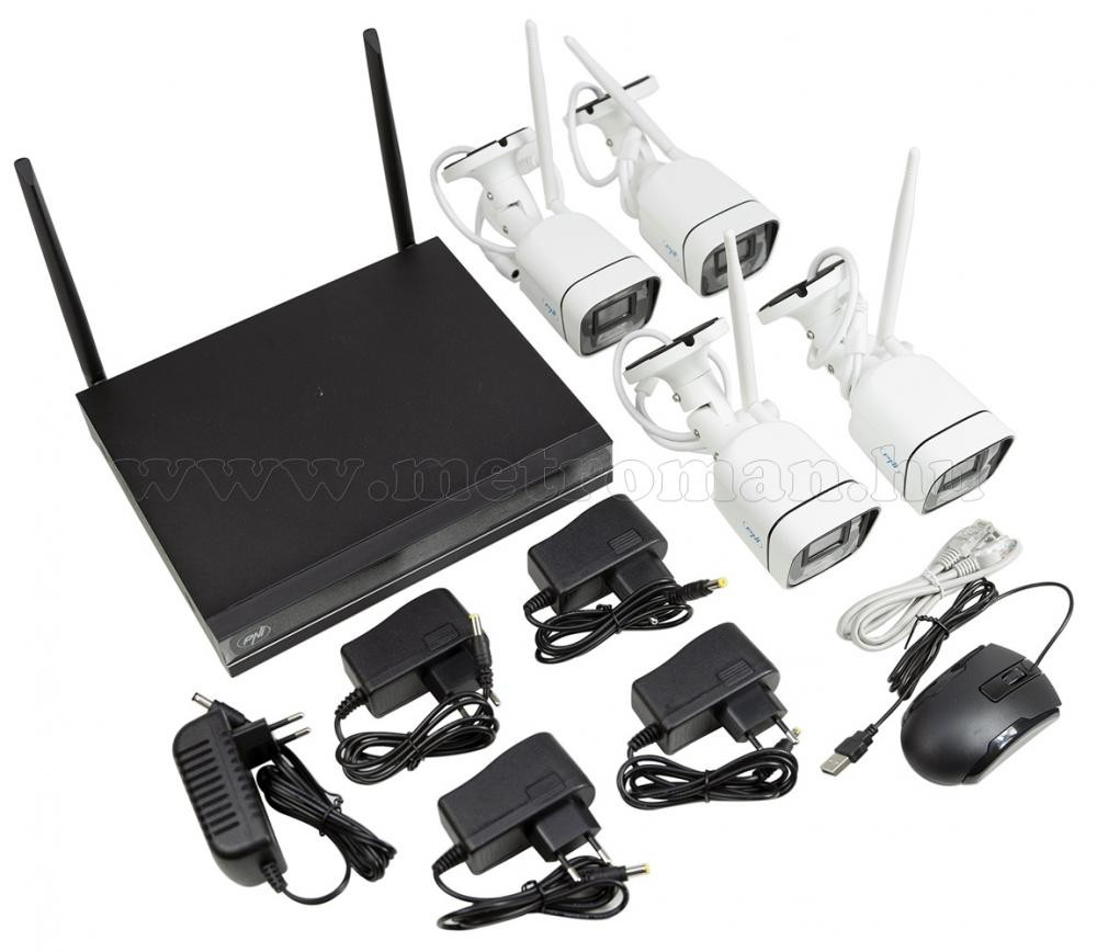 WIFI 660-4 3MP Vezeték nélküli kültéri kamera rendszer 3 Mpixel IP kamerákkal és NVR videó rögzítővel