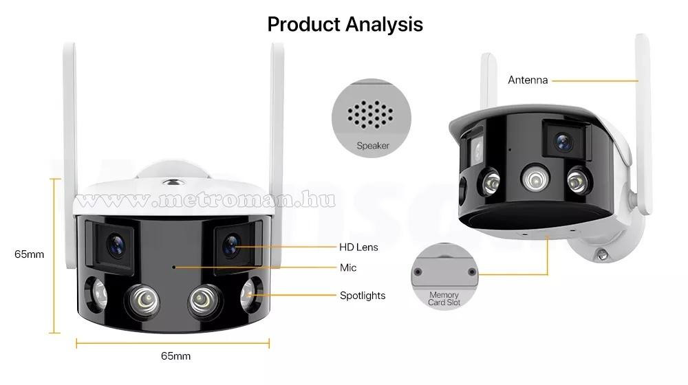 Vezeték nélküli kültéri kétkamerás Wifi IP megfigyelőkamera 180 fok látószöggel IP590-FHD-DUAL ICSee