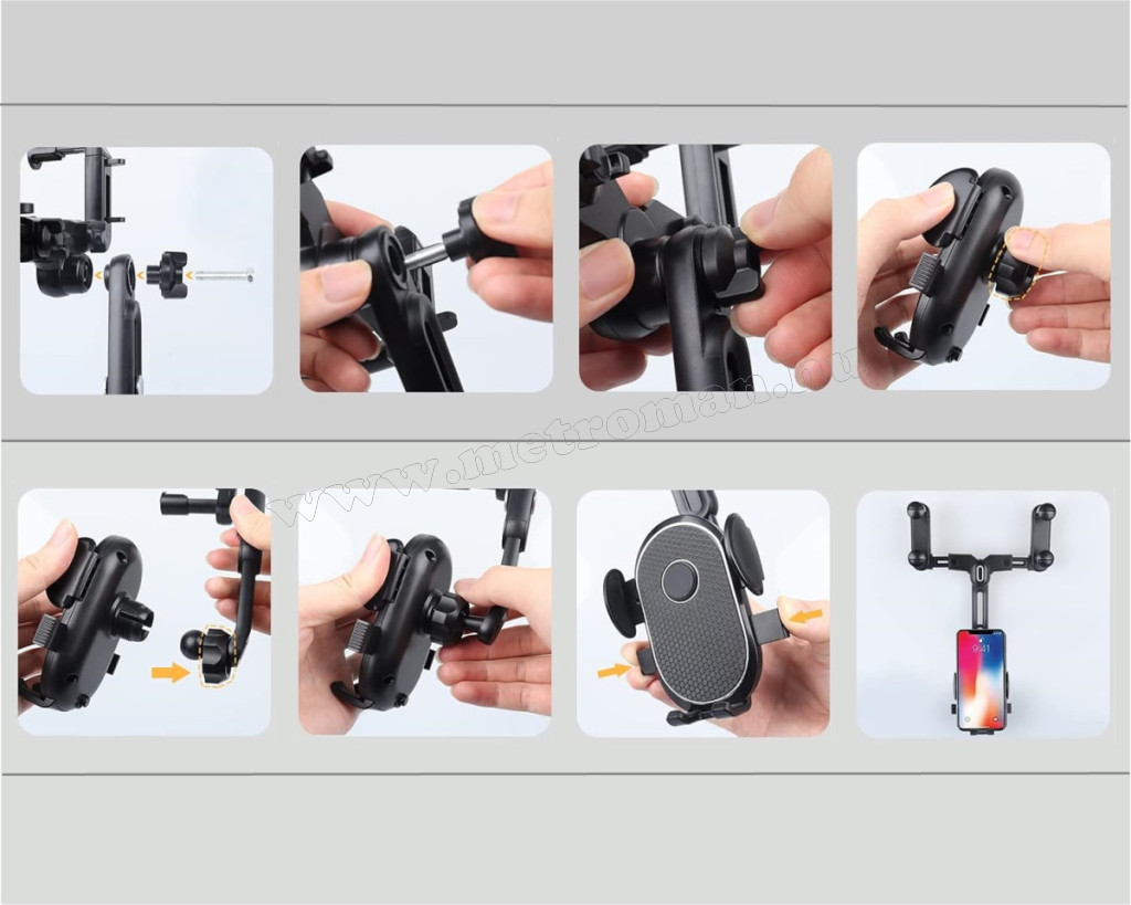 Magasság és szélességállítási lehetőségek, 360°-os elforgatás teszi lehetővé, hogy a telefont a megfelelő pozícióban rögzítse, mely így nem korlátozza a látóteret, segíti a biztonságos vezetést.