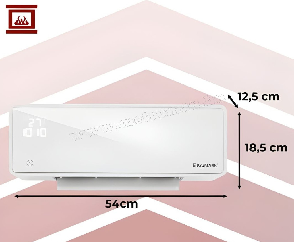 WIFI elektromos ventilátoros fali hősugárzó, fali fűtőtest üveg előlappal Zelvion Kaminer 26398 TuyaSmart