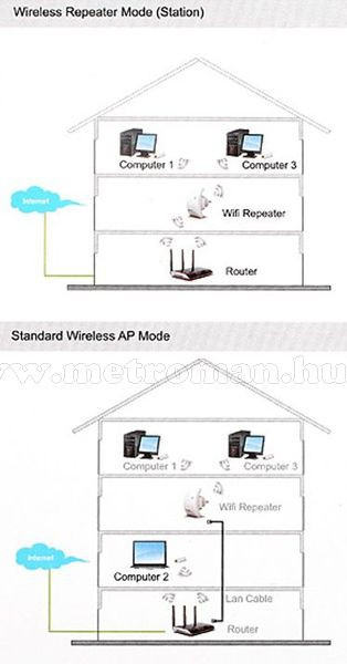 - A konnektorba helyezve képes a wifi térerejét felerősíteni és továbbítani, emeletre vagy másik helyiségbe  is.