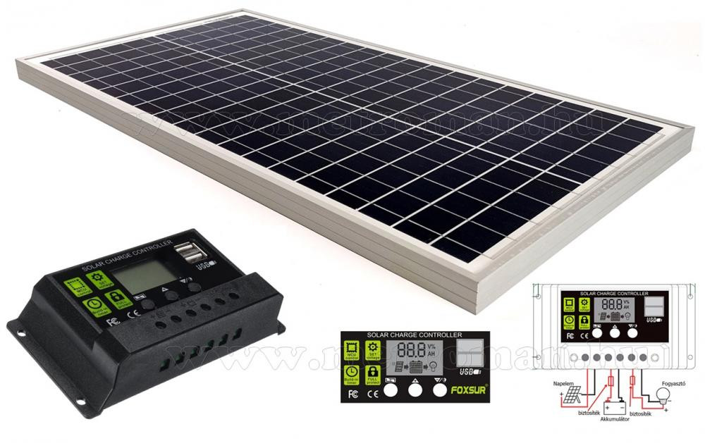 12V 30 Watt napelemes töltő szett töltésvezérlővel Poly Solar MP-30W-10A-PWM